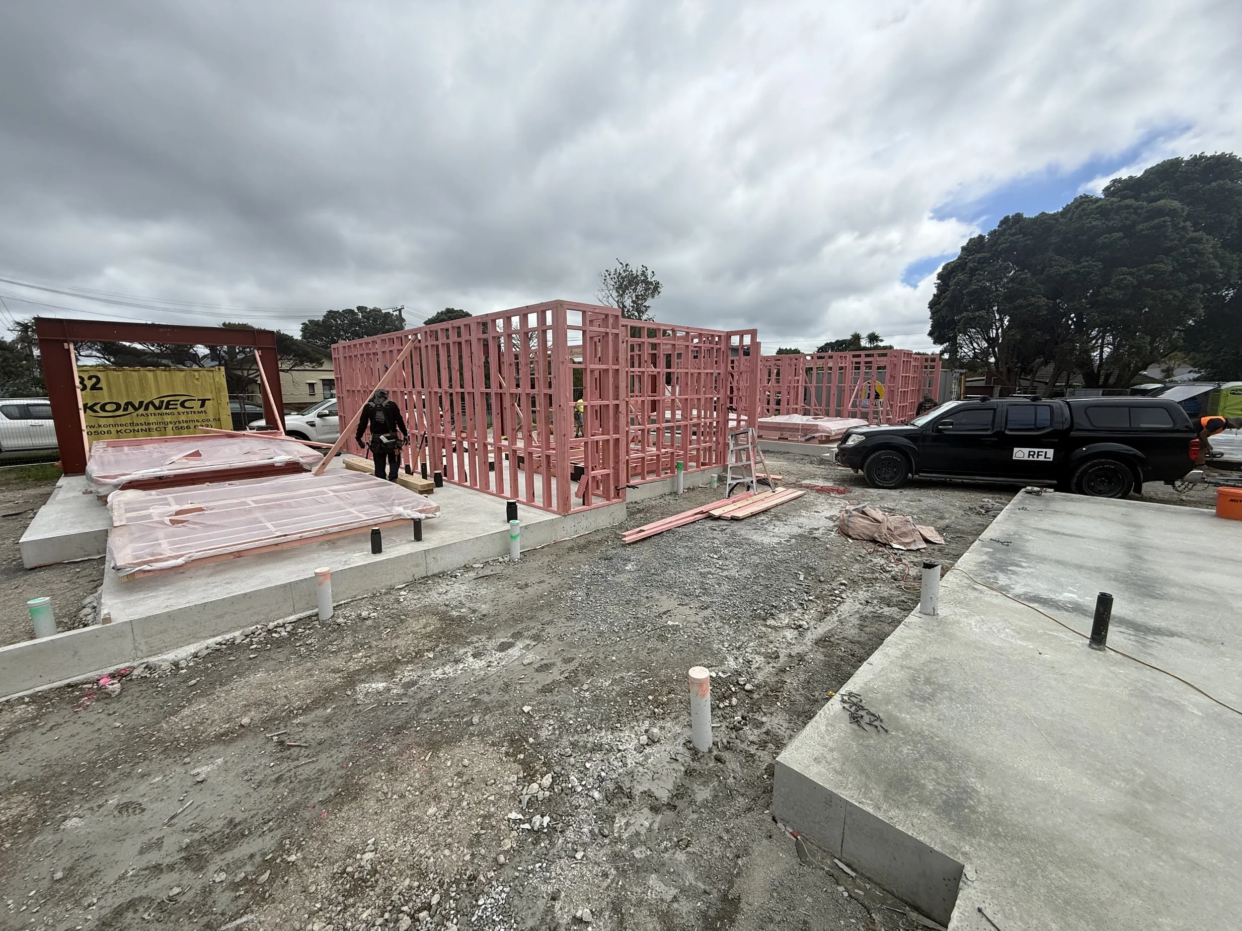Over the coming weeks, we expect to complete the remaining stormwater and sewer works. The service trench — including Chorus and Power — will begin next week, and slab boxing is planned to commence on the 1st of December.